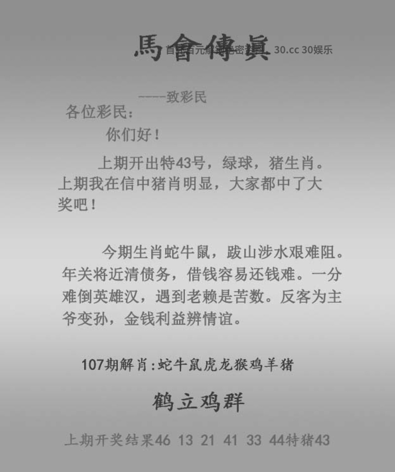107期马会传真: